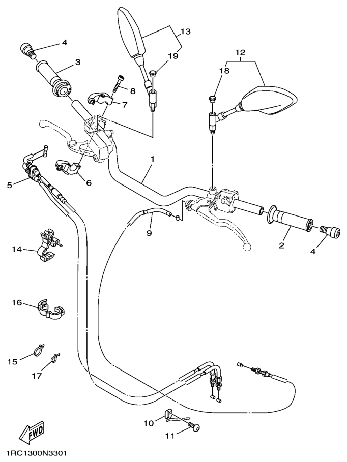 Ohjaustanko ja vaijerit, MT09A Street Rally 2015, MT09, 900 cc, Yamaha -varaosa luettelot