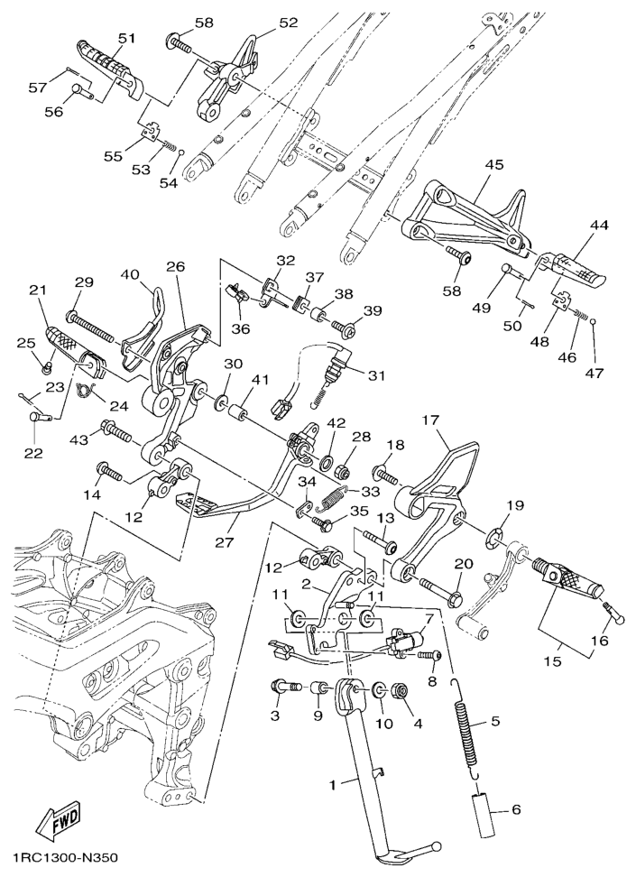 Seisontatuki ja jalkatapit, MT09A Street Rally 2015, MT09, 900 cc, Yamaha -varaosa luettelot