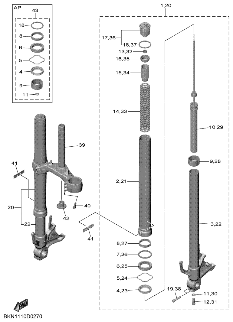 Etuhaarukka, YZF-R9 2026, YZF-R9, 900 cc, Yamaha -varaosa luettelot
