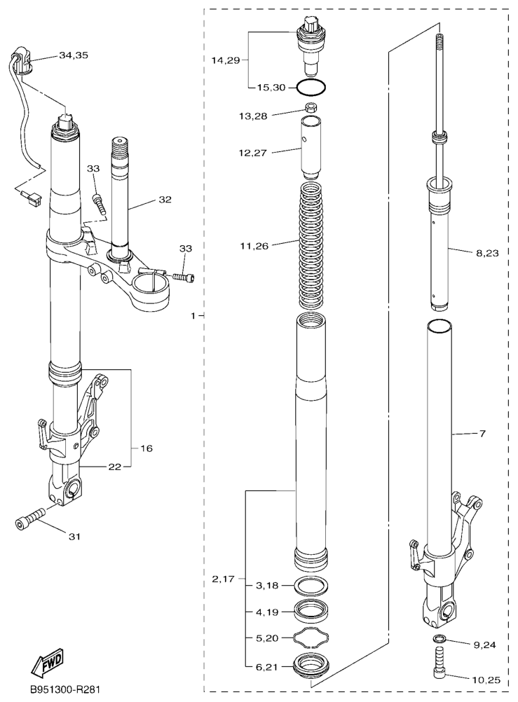 Etuhaarukka, FJR1300AE 2016, FJR1300, 1300 cc, Yamaha -varaosa luettelot