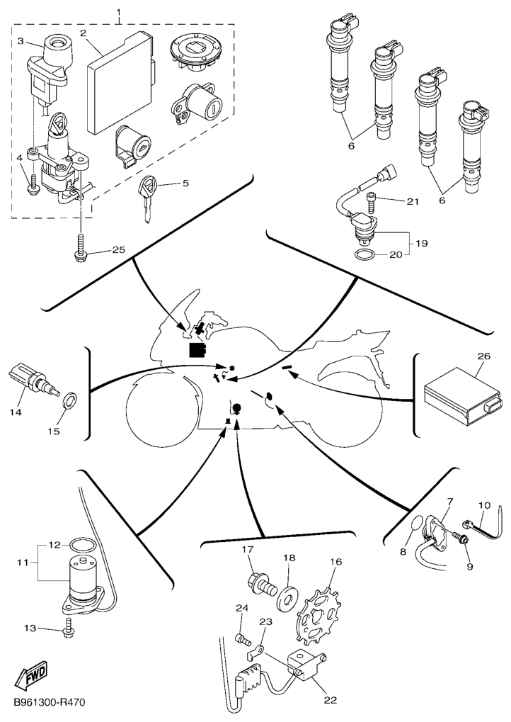 Sähköjestelmä 1, FJR1300AE 2016, FJR1300, 1300 cc, Yamaha -varaosa luettelot