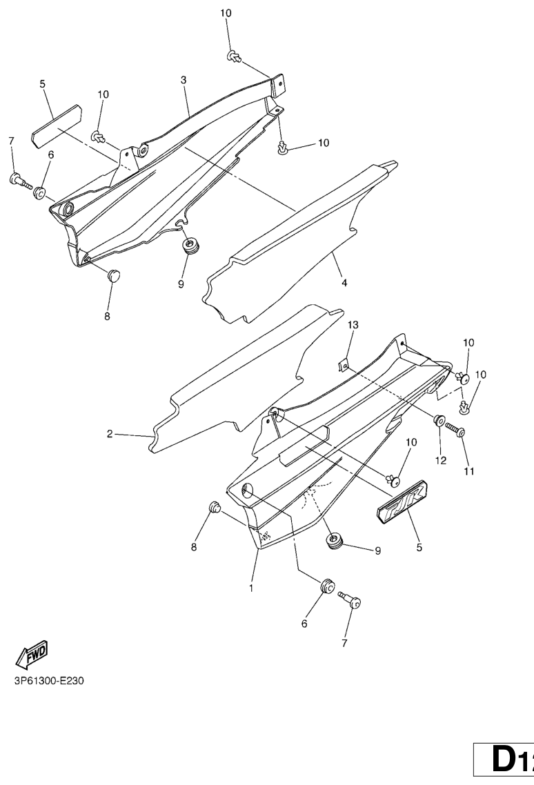 Side cover, FJR1300AS 2006, FJR1300, 1300 cc, Yamaha -varaosa luettelot