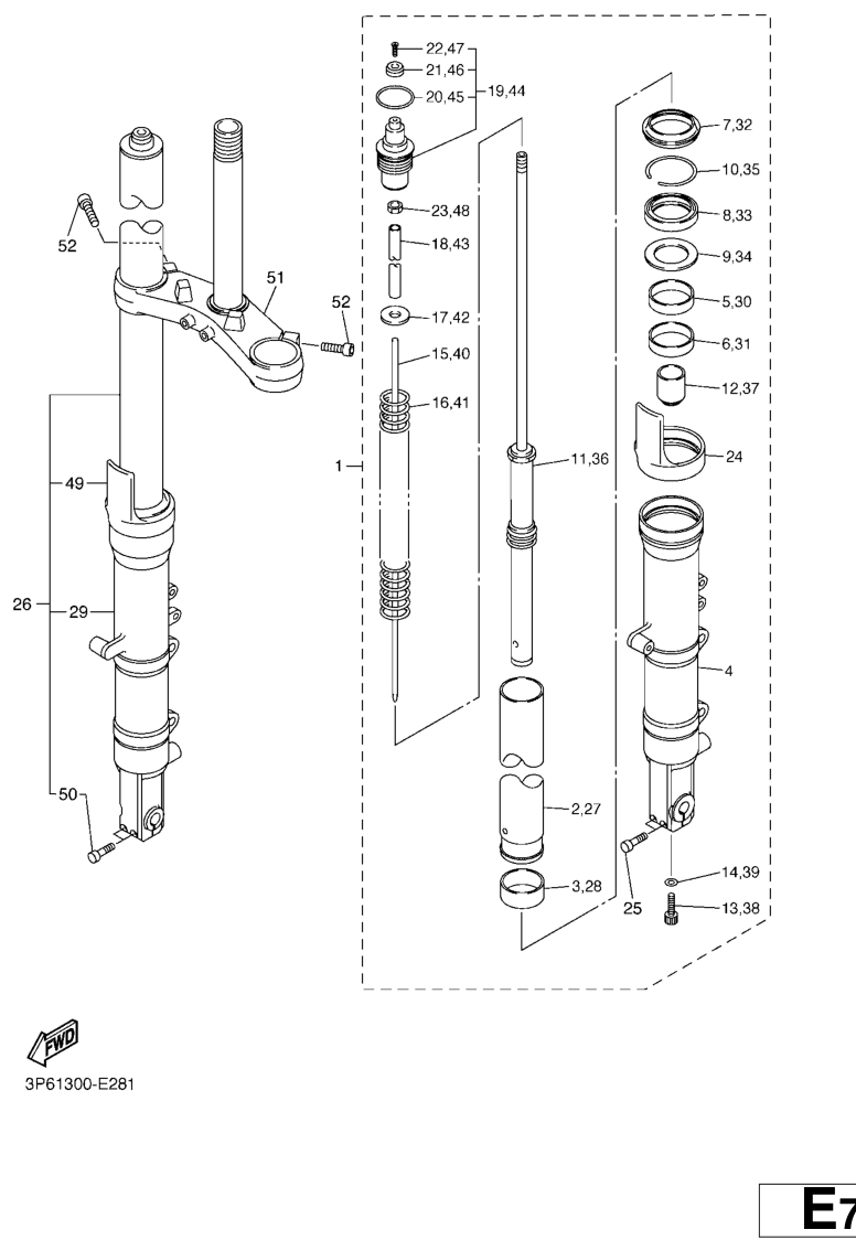 Etuhaarukka, FJR1300AS 2008, FJR1300, 1300 cc, Yamaha -varaosa luettelot