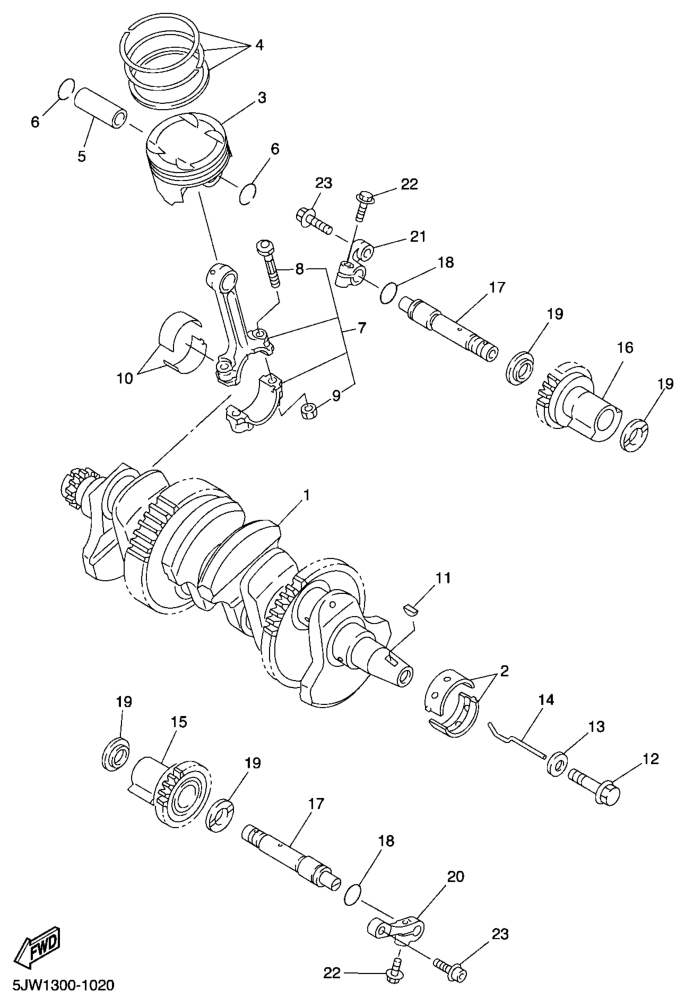 Kampiakseli ja mäntä, FJR1300AS 2009, FJR1300, 1300 cc, Yamaha -varaosa luettelot