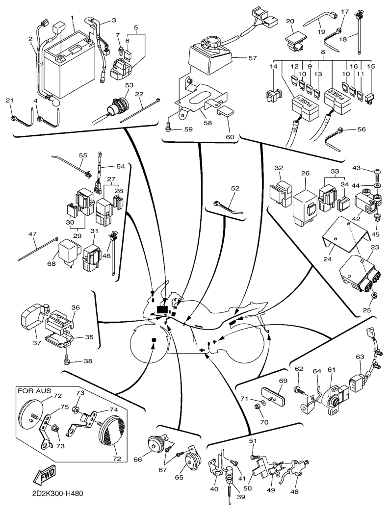 Sähköjestelmä 2, FJR1300AS 2009, FJR1300, 1300 cc, Yamaha -varaosa luettelot