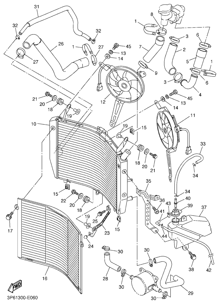 Jäähdytin ja letkut, FJR1300AS 2011, FJR1300, 1300 cc, Yamaha -varaosa luettelot