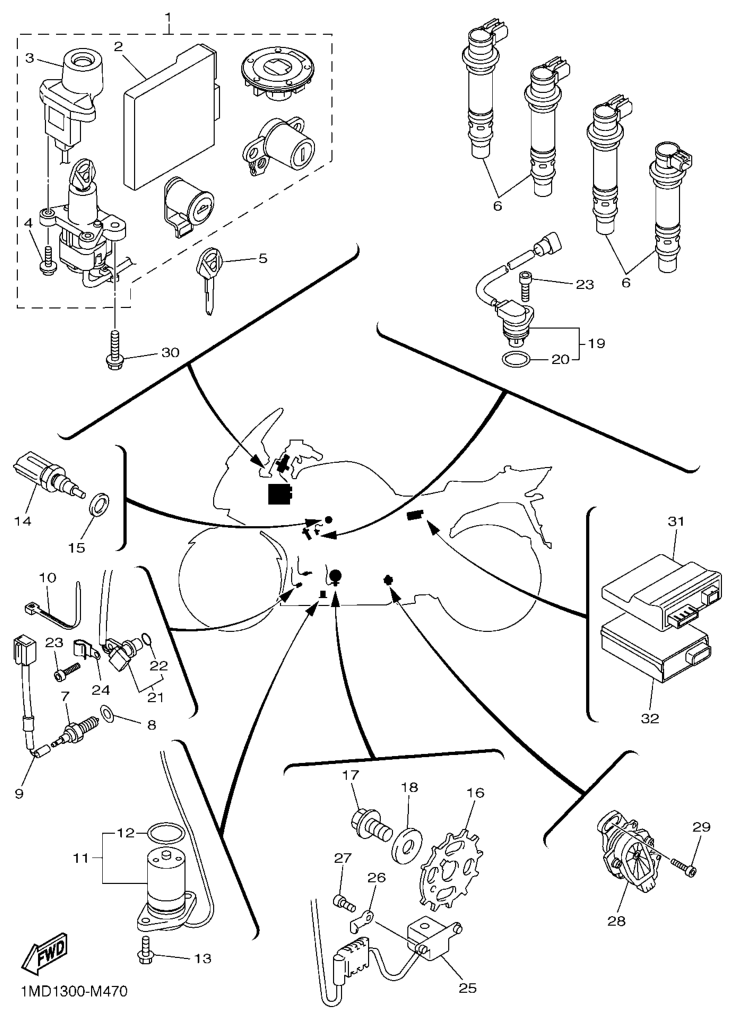 Sähköjestelmä 1, FJR1300AS 2013, FJR1300, 1300 cc, Yamaha -varaosa luettelot