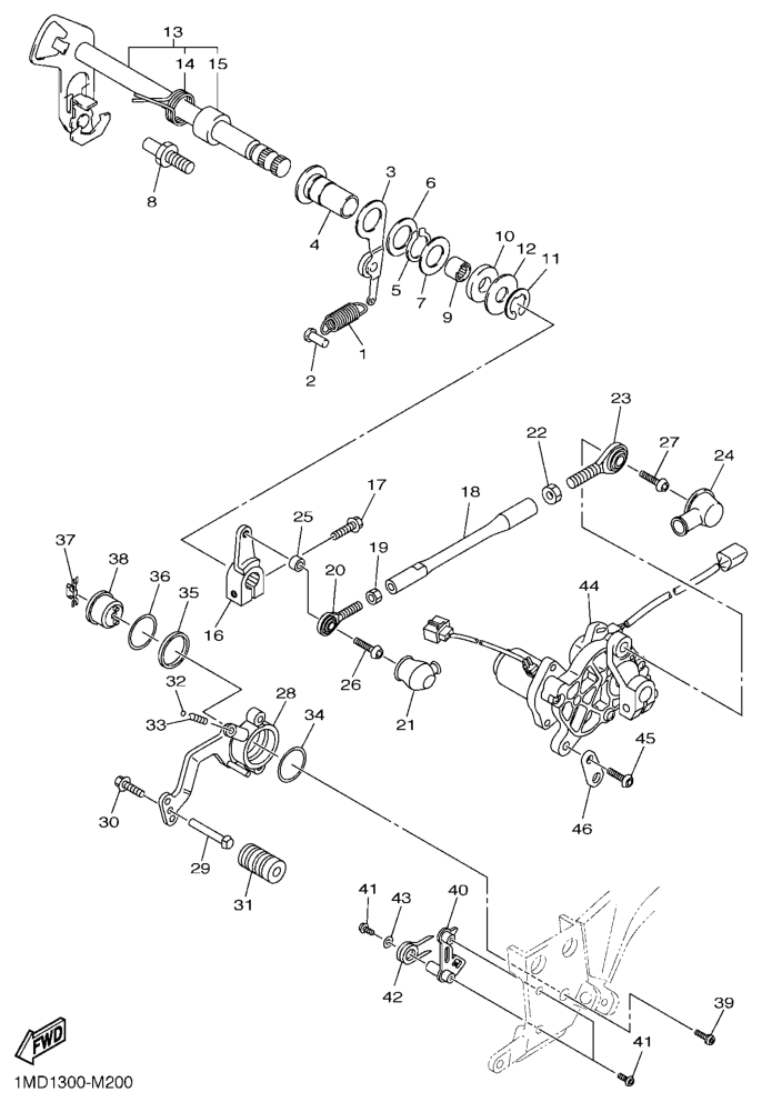 Vaihdeakseli, FJR1300AS 2016, FJR1300, 1300 cc, Yamaha -varaosa luettelot