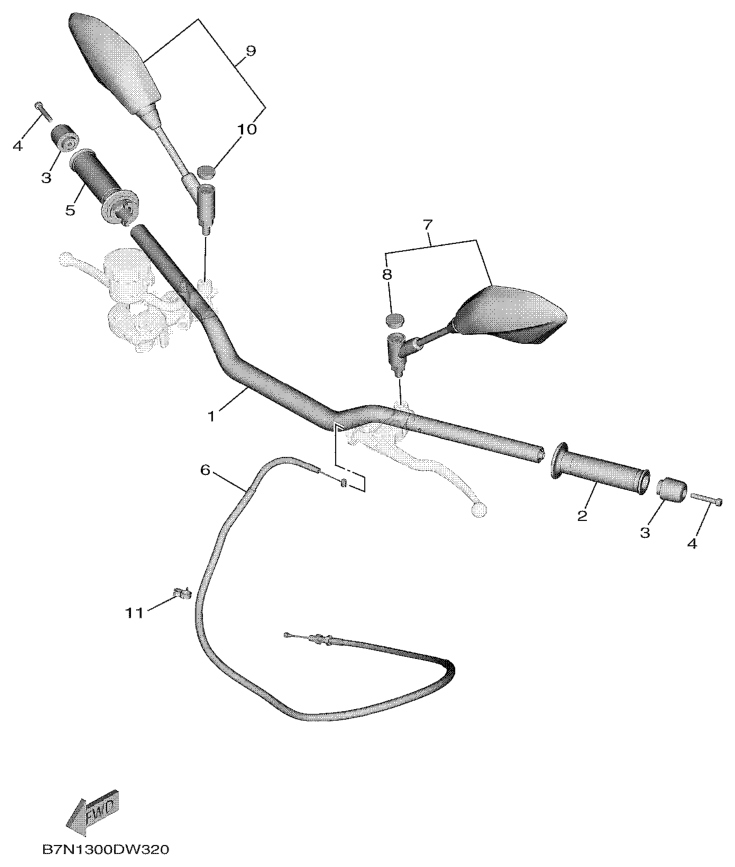 Ohjaustanko ja vaijerit, MT09SP 2021, MT09, 900 cc, Yamaha -varaosa luettelot