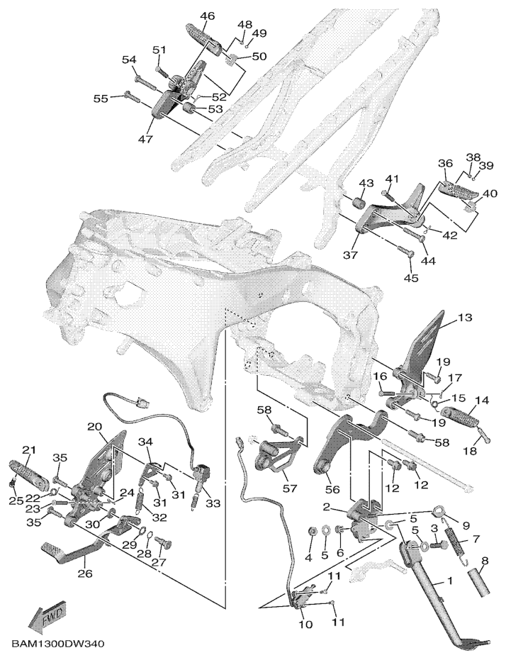 Seisontatuki ja jalkatapit, MT09SP 2023, MT09, 900 cc, Yamaha -varaosa luettelot