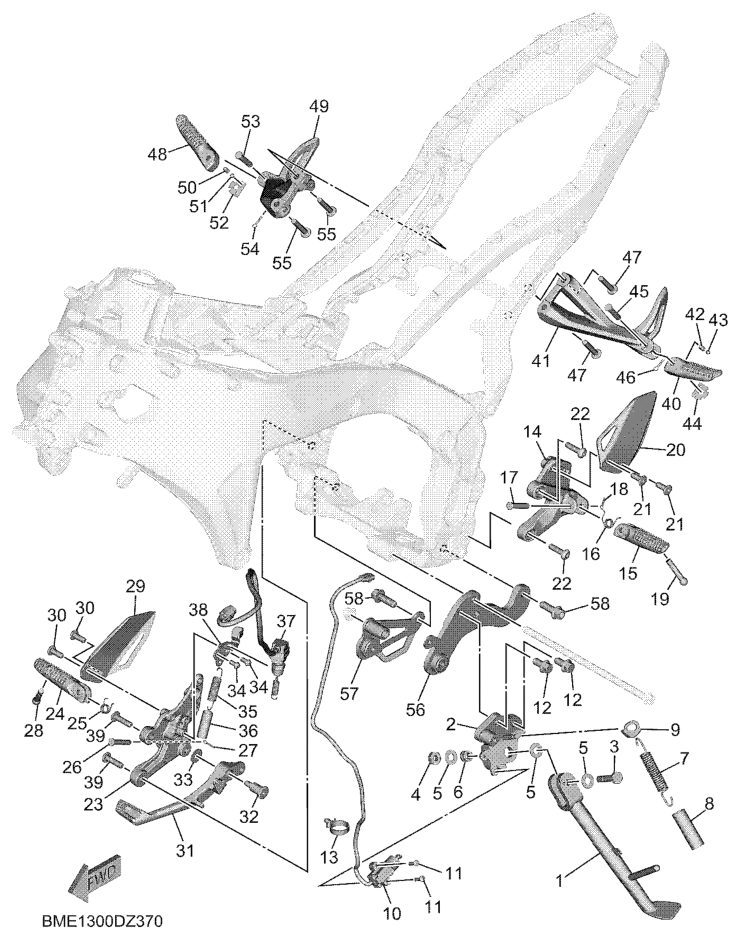 Seisontatuki ja jalkatapit, MT09SP 2024, MT09, 900 cc, Yamaha -varaosa luettelot