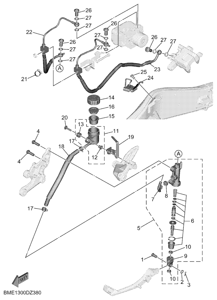 Takajarrun pääsylinteri, MT09Y-AMT 2025, MT09, 900 cc, Yamaha -varaosa luettelot